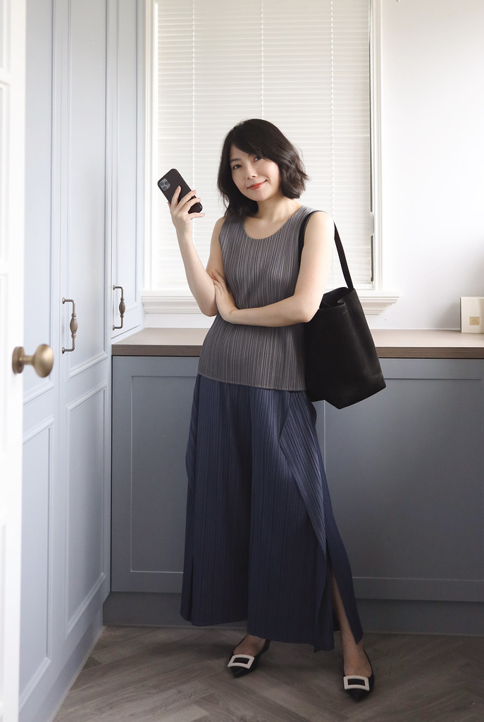 ♥ Pleats Please Issey Miyake pleated tank top,基本款圓領上衣有3號,折上折72折,參考我收的類似灰色系。