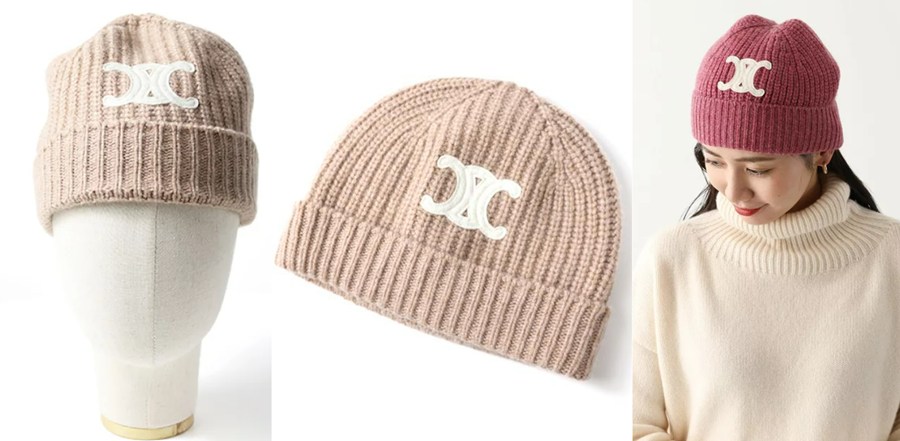 ▲  Celine Triomphe Knit Beanie, (需登入帳號才知道能不能看到) CELINE cashmere凱旋門針織帽11360含稅,台灣22000=51折!  參考同款不同色戴起來的樣子。