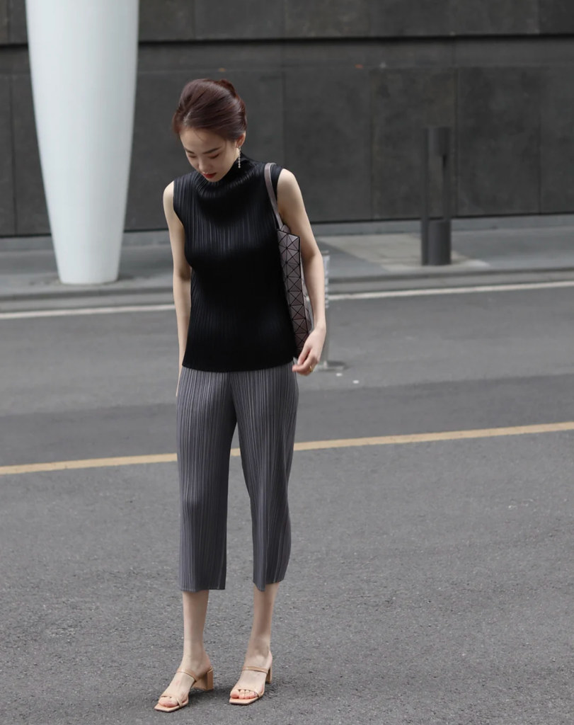 ♥ Pleats Please Issey Miyake High-Neck Sleeveless Top 。三宅一生基本款小高領上衣7334+9折,Farfetch 13030=51折!我自己通常穿3號,  額外9折碼【JULY10】。