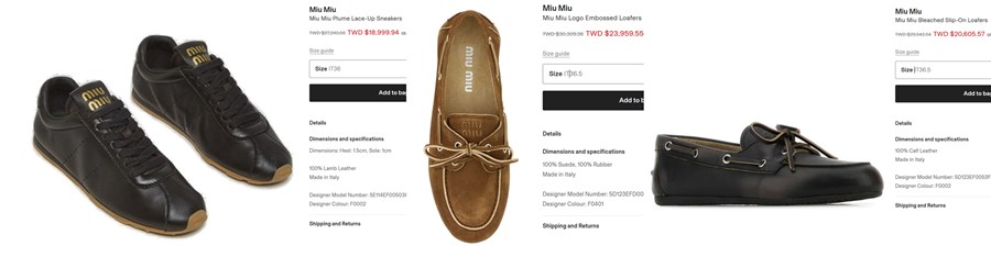 ▶ Miu Miu Logo Embossed Loafers 。Miu Miu 麂皮綁帶帆船鞋補了 36.5 碼25631+9折, 台灣35000=66折! 我自己腳長22.5寬9穿36 , 額外9 折碼【JULY10】。
